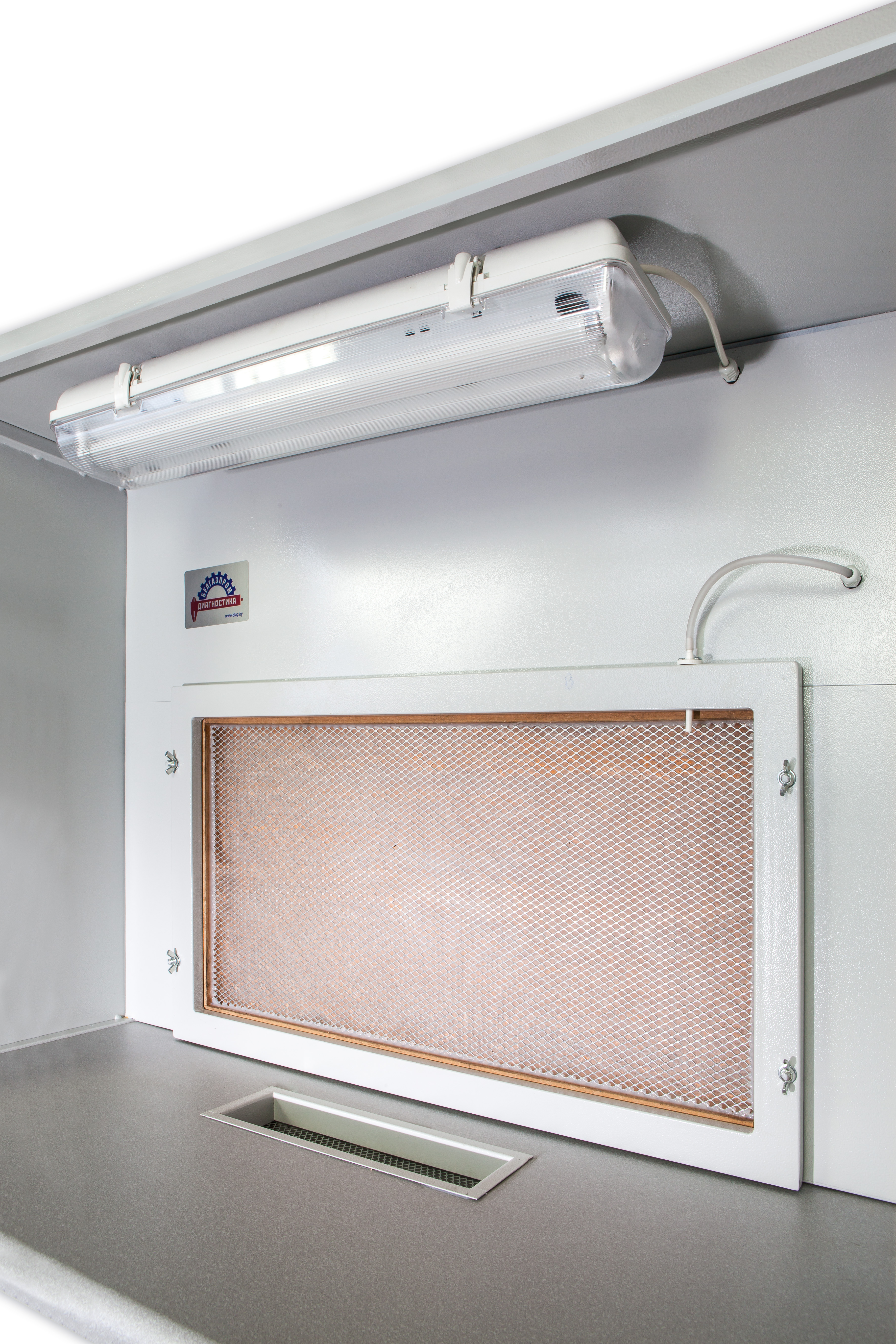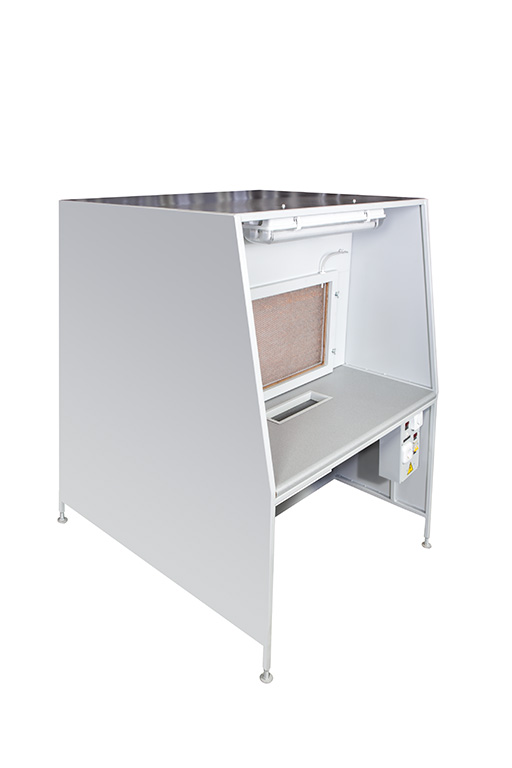 Встроенная вытяжная система с высокоэффективной трёхкаскадной системой очистки воздуха защищает рабочее и окружающее пространство от загрязнения частицами тонера и позволяет эксплуатировать стол в любом помещении.Свойства: