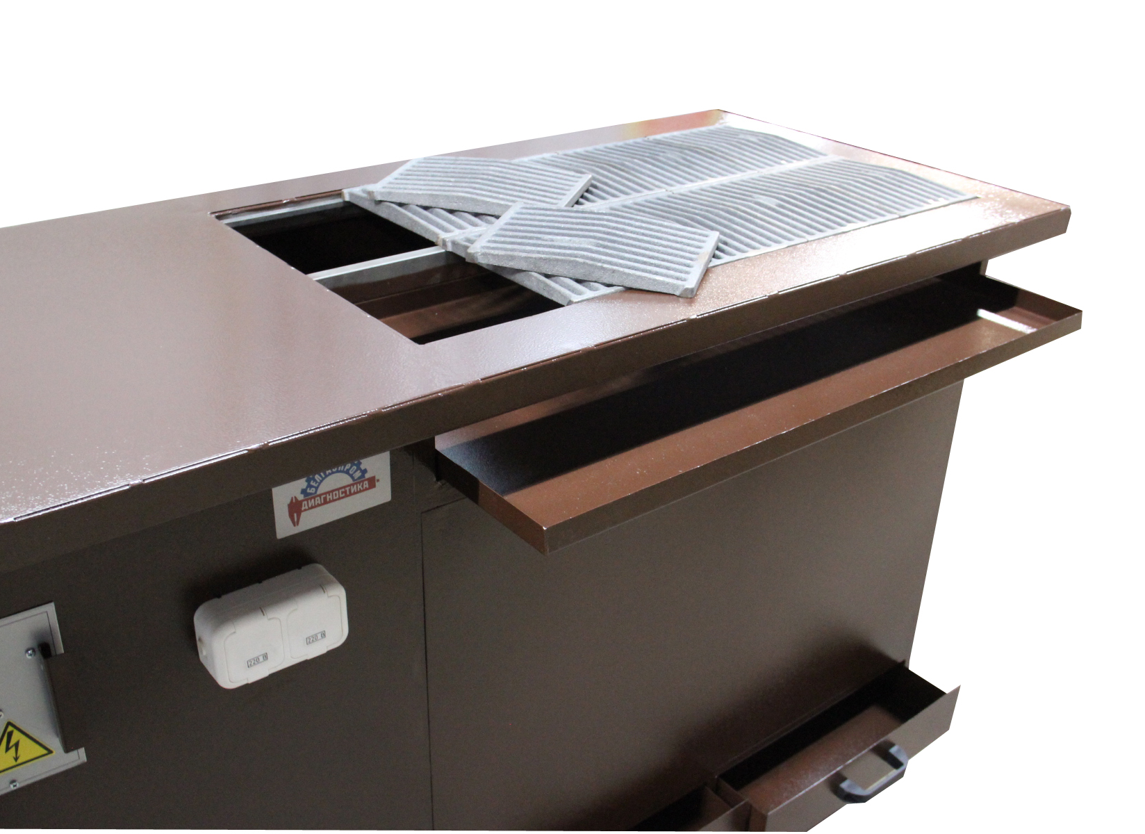 Стол сварщика РМС-3 состоит из рабочего стола с чугунными съемными колосниковыми решетками на которых производятся сварочные работы, воздуховытяжного устройства с нижним отсосом из рабочей зоны сварочного аэрозоля, продуктов горения, пыли, вредных веществ.