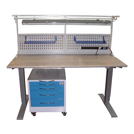 Стол электромонтажника СЭМ-1-Э оборудован электрической подъемной системой ELS3-650-BTU-Q фирмы SUSPA. Для удобства специалистов работы можно проводить как в положении сидя, так и в положении стоя.